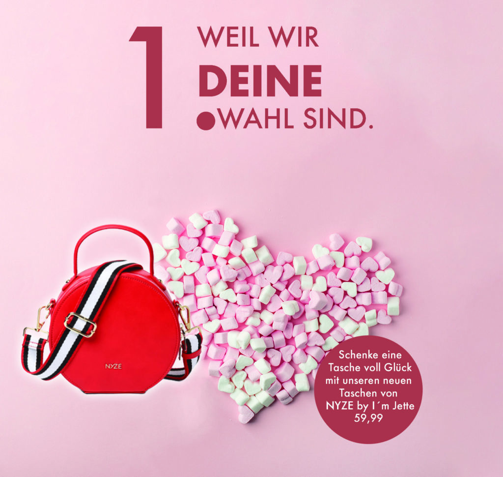 Neuigkeiten Weiterlesen Danke, dass wir deine 1. Wahl sind! 08.02.2020 / 1364 Wow, wie einzigartig ist denn bitte diese Handtasche?! Passend zum Valentinstag, stellen wir hier die neue Tasche Nyze von I’m Jette vor! Rot, praktisch, kompakt... Weiterlesen
